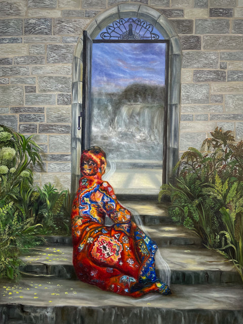 Iconic Canadian landscapes are made dreamy and wonderous by Iranian Canadian artist Leila Zolfalipour. Ornate Persian rugs envelope figures and objects within these scenes, merging the artist’s love of her new homeland here in Alberta with her rich Iranian heritage.